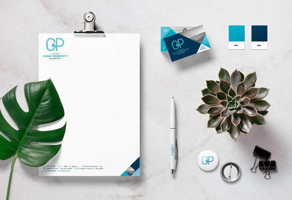 So we started with a redesign of the logo. Through this process, we selected a light, bright colour palette that stands out in property market. The brand colours were also chosen to complement an established mortgage broking business that operates alongside The Good Property Company.
